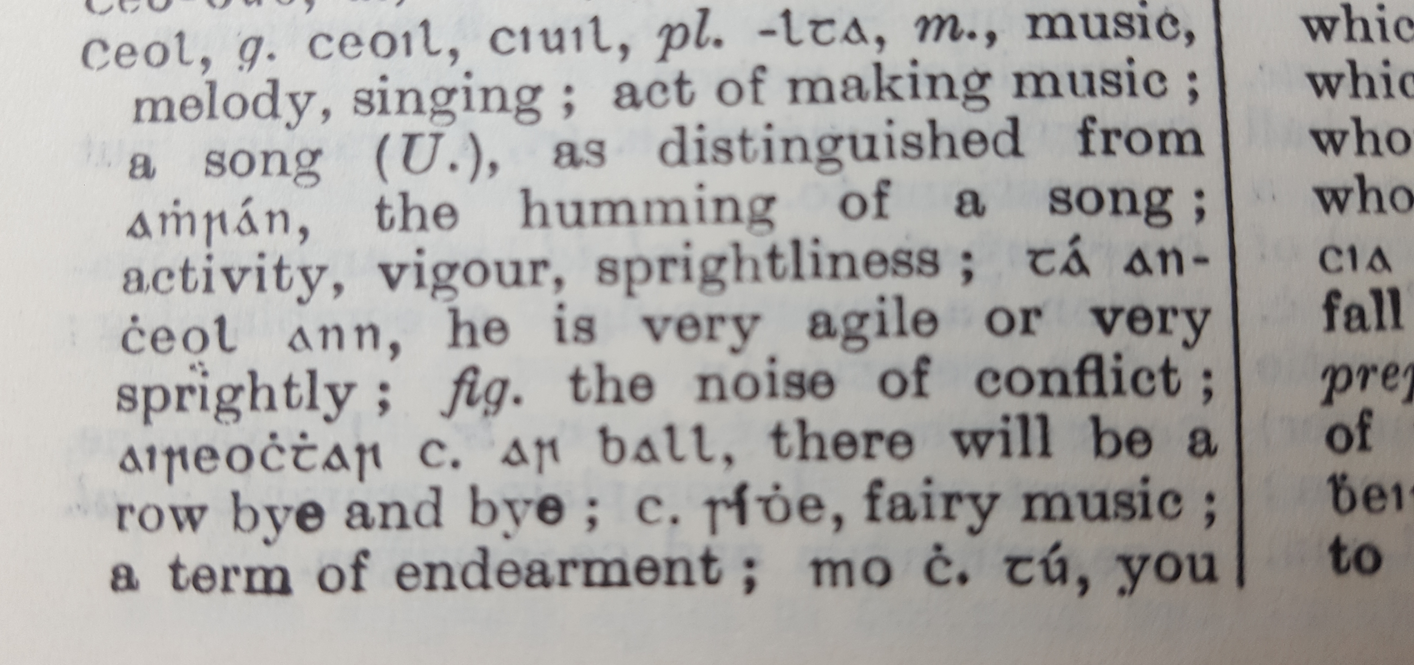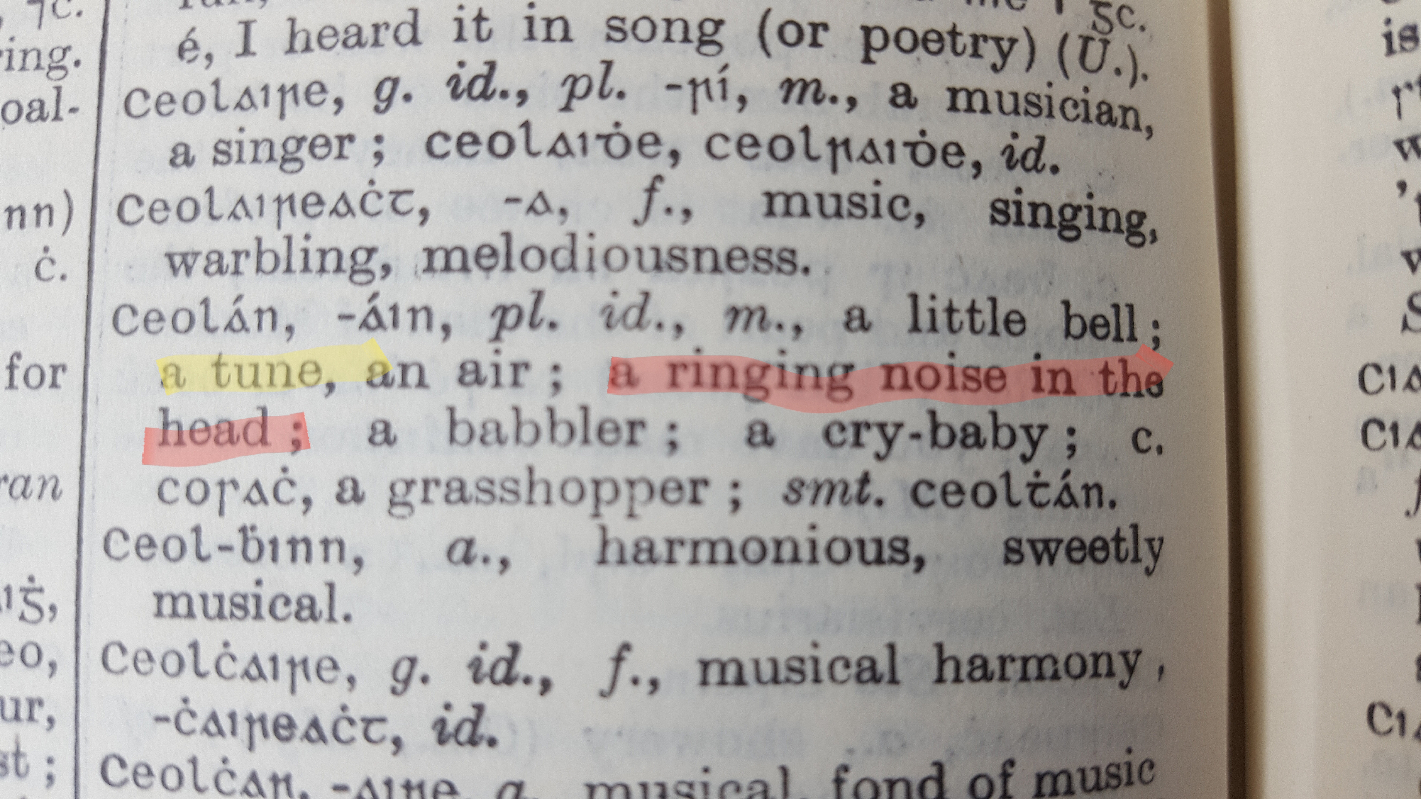 I giggle at the concept- ‘Tune’ can also be defined as a ‘ringing noise in the head‘ in the English translation of the Irish word Ceolán.