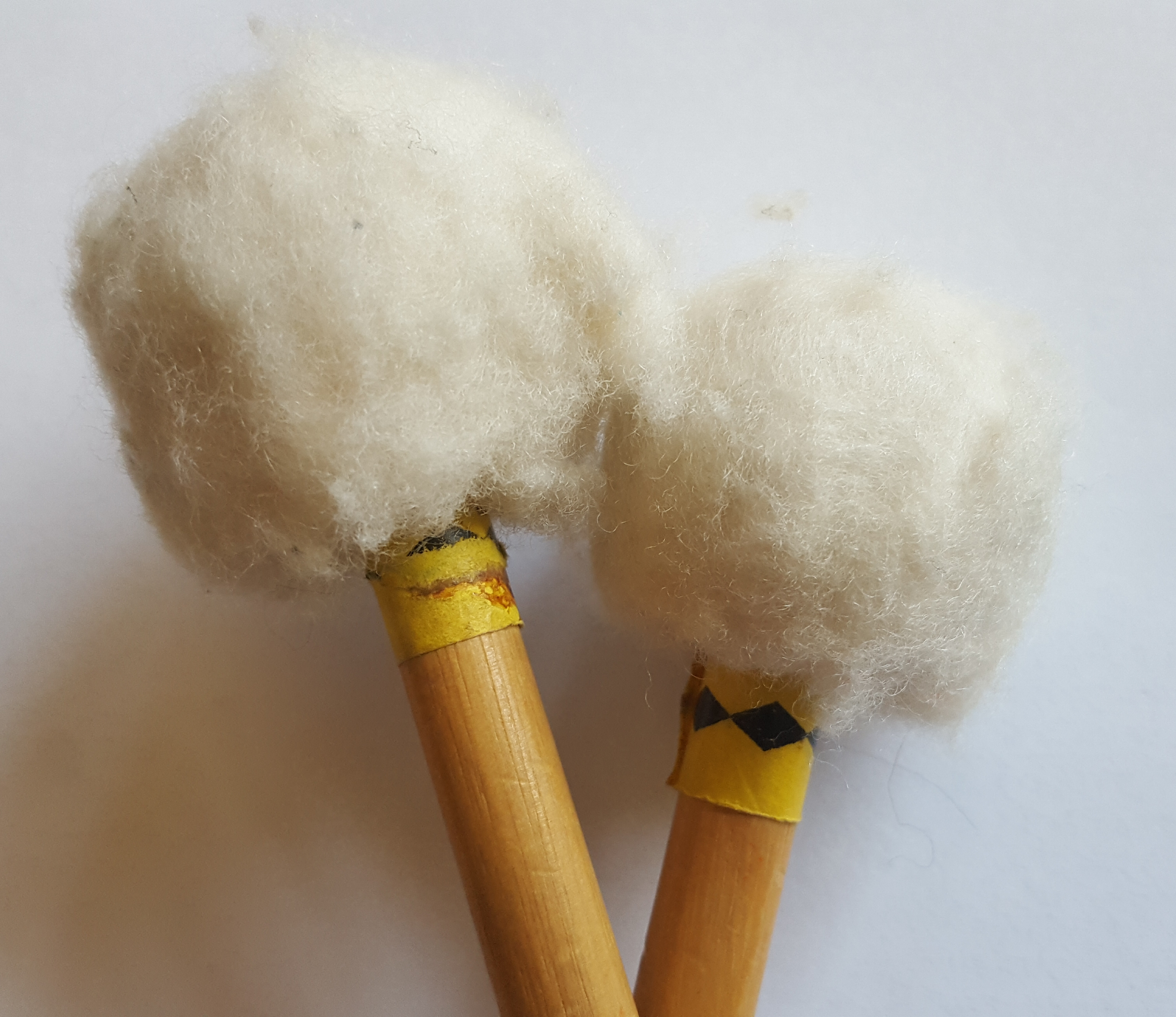I actually have timpani mallets as pictured below which I use for mellow beats on the toms as well as soft, subtle rolls on cymbals for subdued effects which can build up anticipation with varying crescendos and diminuendos. They are something to save for special moments in drumming, rather than use for quick and complex rhythms. If playing in an ensemble before the main rhythm comes in, mallets can produce atmospheric, almost meditative tones!