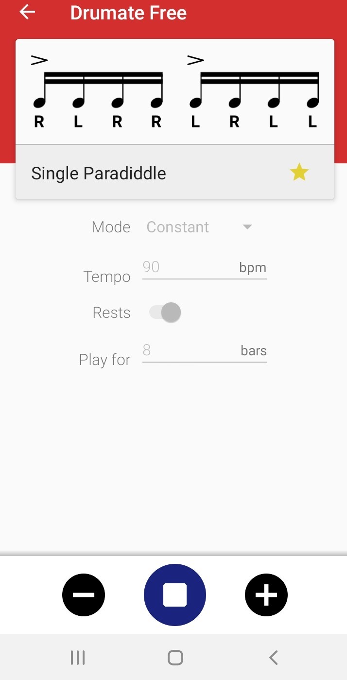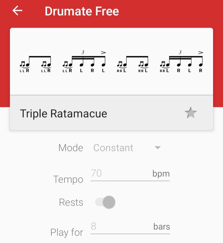 A feature I like about this app is that you can use stars (or unclick stars) next to each rudiment in any order. I think this is useful if you want to work your way through the rudiments and can select which patterns you have completed or which ones to focus on, almost like ticking off a to-do-list.