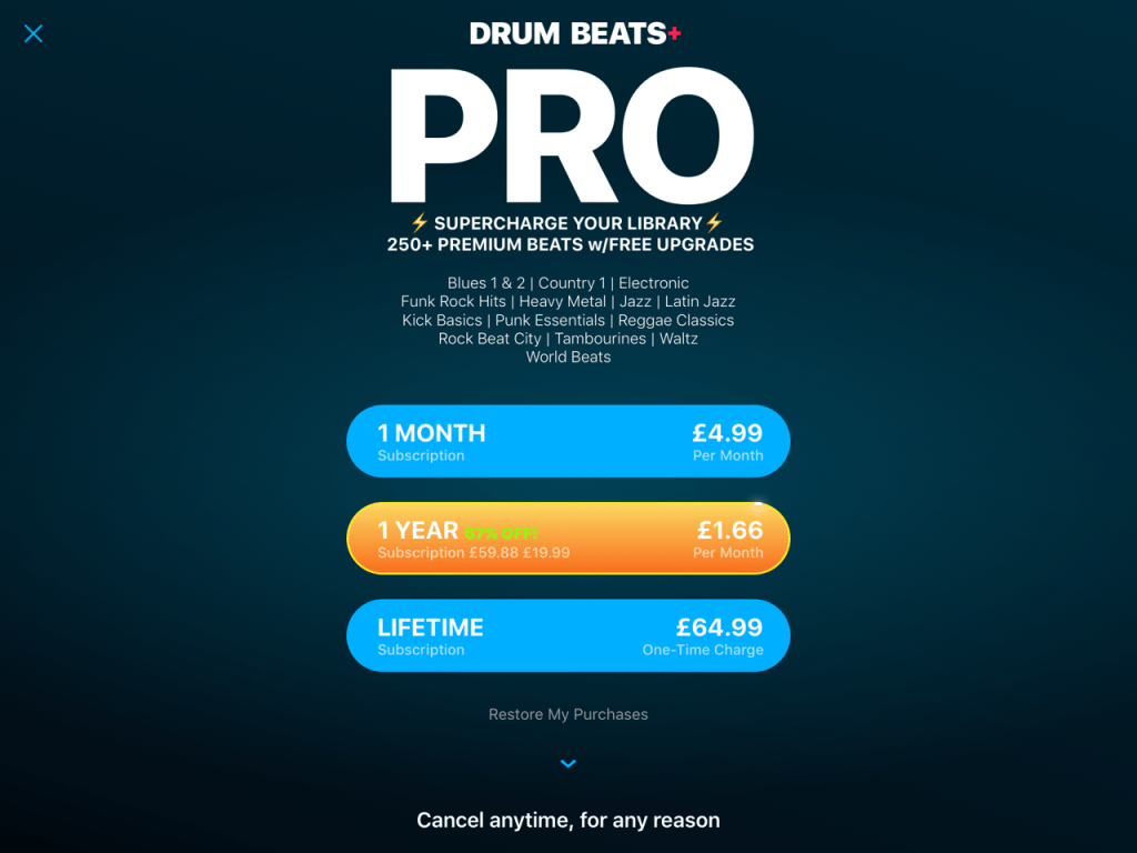 I would recommend this app for any drummer who wants to take practise seriously and develop a wide range of drumbeats in several genres. For those who prefer to read music and see what they are drumming to, however, it is missing drum score.